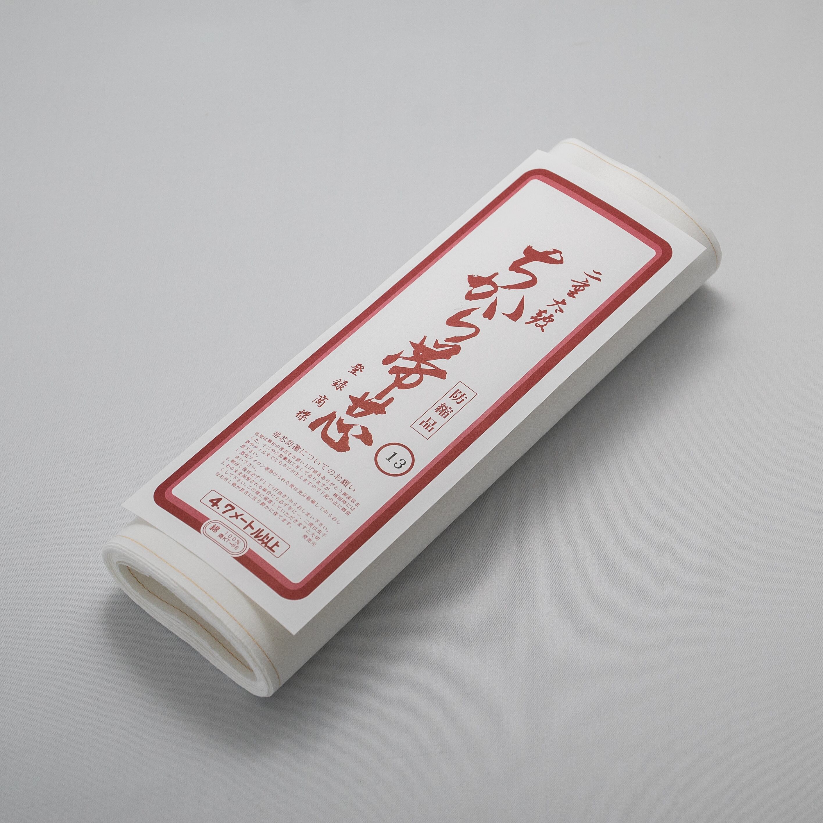 「ちから帯芯」は愛知県三河地方で織られた綿の帯芯で、その中でも上質で機能性に優れたものを、プロの目で選りすぐった帯芯のシリーズです。